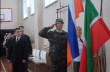 В МБОУ «Тетюшская средняя общеобразовательная школа №2» завершилась первая часть военизированной игры - «Смотр строя и песни». Жюри конкурса - старший лейтенант морской пехоты, специалист РОО Шамсутдинов Э.Д., директор школы Гаффаров Ф.Ф., учитель физкультуры Долгов А.К..