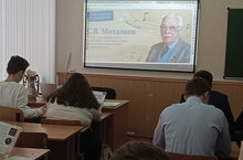 Учащиеся ознакомились с историей жизни и творчества Сергея Михалкова, на чьих стихах продолжает воспитываться вся страна, а одним из уникальных фактов в биографии является создание текстов к гимну СССР и гимну России. Закончили разговор фрагментом из беседы Сергея Владимировича Михалкова с его сыном – Никитой Сергеевичем Михалковым.