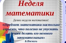 В рамках недели математики в школе с 23.01.2023 по 28.01.2023 в начальных классах пройдут уроки и внеклассные занятия. Цели занятий: содействовать активизации познавательной деятельности учащихся, развитию процессов восприятия, внимания, памяти, мышления; формировать творческие способности учащихся, элементы которых проявляются в процессе выбора наиболее рациональных способов решения задач, в математической и логической смекалке; глубже раскрыть роль математики в жизни, способствовать воспитанию коллективизма, воспитанию справедливости, ответственности, уважение к мнению другого.