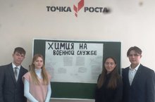 Химики снабдили военных большим количеством веществ и материалов, повышающих боеспособность армии. В « Точке роста» учащиеся 10 класса выполнили проект на тему « Химия на военной службе». В своей работе они рассказали, где и как используют легкие и прочные сплавы, разнообразные полимеры, антикоррозионные покрытия и приспособления и специальные добавки к топливу.