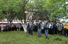 Учащиеся и персонал школы, надев ватно-марлевые повязки организованно покинули здание школы и, собравшись в пункте сбора, наблюдали за слаженными действиями, прибывшей пожарной команды.
