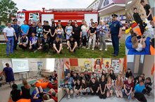Здесь ребята увидели тренировки студентов при переплаве, через водную преграду, по преодолению полосы с препятствиями и развертывание пожарного ствола в команде, подъёме и спуске на высоту при помощи спасательных верёвок, тушение огня при помощи огнетушителя.