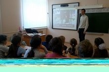 Сегодня в рамках месячника оборонно-массовой, военно-патриотической и спортивной работы с учащимися 1-5 классов нашей школы сотрудник центра «Форпост» Шарафутдинов М.Ф. провел беседу «Дети войны». В ходе беседы он рассказал о судьбах детей Великой Отечественной войны – Ларе Михеенко, Вите Коробкове, Тане Савичеве и Володе Казначееве и показал презентацию по теме.