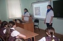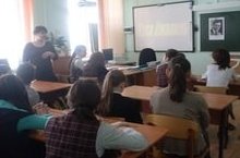 6 апреля 2015 года в МБОУ « Тетюшская татарская СОШ» учащиеся 7, 8 и 9-го класса приняли участие в библиотечном уроке «Жизнь и творчество Мусы Джалиля в годы Великой Отечественной войны». Библиотекарь Емельянова Е.П. рассказала ребятам о произведениях М. Джалиля, учащиеся прочитали стихи поэта. С большим удовольствием посмотрели презентацию о жизни поэта. В завершении презентации девочки и мальчики активно отвечали на вопросы викторины. 06.04.2015