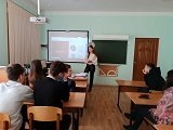 В рамках профориентации перед обучающимися 8-11 классов выступила выпускница нашей школы Хусаинова Зарина, студентка второго курса Казанского национального исследовательского технологического университета по специальности ««Наноинженерии». Она подробно рассказал о деятельности КНИТУ, о правилах приема, затем с удовольствием ответила на интересующие вопросы. Выпускники смогли узнать много полезной информации, которая в последующем приведет их к успешному будущему.