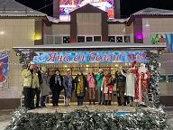 В новогоднем танце вместе со сказочными героями: Бабой Ягой, Кикиморой, Котом Баюном, Снежной Королевой, Девочками Конфеточками, Снегурочкой и конечно же Дедом Морозом закружилась детвора.