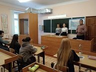 Бөтенроссия балаларга хокукый ярдәм күрсәтү көне кысаларында укучылар гаилә иминлеге һәм балигъ булмаганнарның хокук бозуларын профилактикалау буенча инспектор Н.Г.Болтунова белән очраштылар.