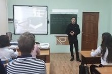 В целях организации и проведения профориентационной и пропагандистской работы с обучающимися 10 – 11 классов была проведена встреча с выпускником школы Сагировым Ильназом Фирдусовичем. Ильназ окончил нашу школу в 2013 году. Поступил на юридический факультет КФУ и в этом году окончил магистратуру на красный диплом. Ильназ Сагиров рассказал о том, как проходит обучение на юридическом факультете КФУ и в чем будет заключаться работа специалиста в области права. «Юрист – это специалист, который свободно владеет информацией о законодательной базе, собирает доказательства и улики, на основании которых принимает решения». Также добавил, что данная сфера настолько обширна, что юристы выступают как в роли защитников, обвинителей, экспертов, так и судей. Базой для подготовки таких специалистов является юридический факультет КФУ. Затем встреча перешла в режим диалога. Вопросы, задаваемые учениками, были актуальны и содержательны.