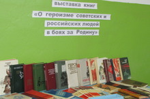 Библиотекарем Сайфутдиновой Г.А. оформлена выставка книг на тему "О героизме советских и российских людей в боях за Родину". Всех желающих ждем для ознакомления литературой.