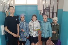 Так, например 17 ого апреля учащиеся 7 класса встретили ребят акцией "Дарю тебе радость", подарив радужные ленточки и пожелав хорошего настроения на весь день. -