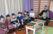 В дошкольной группе с воспитанниками была проведена беседа «Мой папа, дедушка - солдат» и организована фотовыставка "Мой папа-солдат".