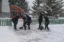 В преддверии Дня неизвестного солдата учащиеся школы провели расчистку снега на территории обелиска павшим воинам ВОВ.