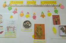 Учащиеся начальных классов оформили выставку рисунков и поделок на тему "Алтын көздә кунакта"