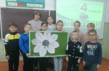Месяц ноябрь нам дарит нам много замечательных событий и праздников. 4 ноября - День народного единства. День этот занимает особое место среди государственных праздников современной России. Он связан с событиями 1612 года - подвигом наших предков, которые сплотились во имя свободы и независимости Родины. Русский народ объединился и не позволил полякам захватить свою Родину. День народного единства - это и праздник единства всех людей, проживающих на территории нашей страны. Например, дети всех народов любят играть. И наш классный час, посвящённый ко Дню народного единства тоже прошёл в игровой форме. Дети узнали об истории праздника, играли, отвечали на вопросы. Все справились с заданиями. В конце у них получился чудо цветок под названием "Единство".