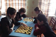 Среди учащихся 1-4 и 5-9 классов проходят сорвенования по шашкам.
