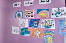 В рамках месячника патриотической работы в школе оформлена выставка рисунков начальных классов "Мы за мир на земле"
