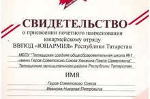 Юнармейскому отряду МБОУ «Тетюшская средняя общеобразовательная школа №1 им. Ханжина П.С.» присвоено имя Героя Советского Союза Иванова Николая Петровича.