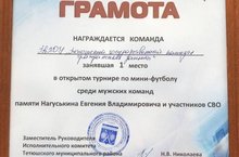 06.05.2023г сборная колледжа заняла 1 место в открытом турнире по мини-футболу в память Нагуськина Е.В и участников СВО.