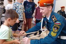 Ребята исполнили для сотрудников МЧС песню «Ангелы доброй надежды» на слова и музыку Дениса Майданова. Зрители очень тепло поблагодарили будущих спасателей и пожарных аплодисментами.