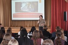 В завершении встречи школьники громким хоровым "спасибо" поблагодарили наших ребят за мероприятие! -