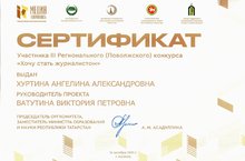 Студентка 306 группы специальности "Физическая культура" Ангелина Хуртина приняла участие в региональном (Поволжском) конкурсе "Хочу стать журналистом".