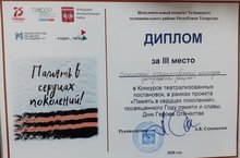 Поздравляем коллектив 202 группы с 3 местом в муниципальном конкурсе театральных постановок "Память в сердцах поколений" , посвященных году Году памяти и славы, Дню Героев Отечества.