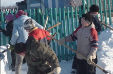 В нашей школе большое внимание уделяется тимуровской работе. Во вторник, 5 февраля, учащиеся 6-11 классов помогали очищать двор ветерана от снега.
