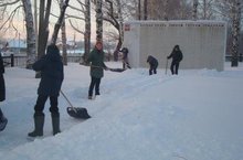 Учащиеся убрали снег с территории обелиска с.Урюм.