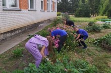 В рамках акции "Добрая неделя" 6-классники организовали субботник. В школьном дворе привели в порядок цветники.