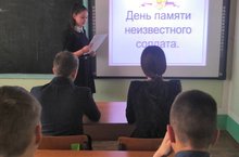 Члены юнармейского отряда провели урок мужества, посвященный Дню Неизвестного солдата. Цель урока - увековечение памяти воинской доблести и бессмертного подвига российских и советских солдат.