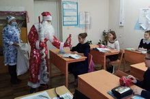 С утра Дед Мороз с Снегурочкой поздравляли учащихся с наступающим новым годом и вручили новогодние подарки от Главы Тетюшского муниципального района.