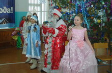 Прошла первая смена елки. В гостях у детей побывали герои сказок: Зима, Кот Базилио, Лиса Алиса, Баба-Яга и др. Они с ребятами провели игры, конкурсы. Дед Мороз и Снегуочка поздравили всех с праздником и вручли подарк от Главы Тетюшского района.