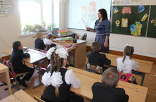 Самый первый урок прошел у первоклассников. Классный руководитель познакомил ребят со школой, Затем совершили путешествие по стране знаний. Ребята познакомились с героями сказок, которые приготовили для первоклассников задания.