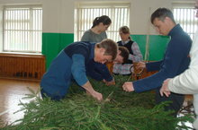 Учащиеся школы готовятся к митингу, посвященную 9 мая. Разносять пригласительные ветеранам и труженикам тыла, поздравляют с праздником ветеранов, которые не могут прийти на митинг, приглашают население на Бессмертный полк, делают гирлянду.