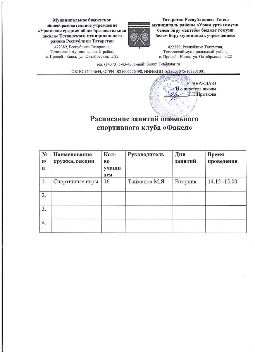 Свидетельство регистрации в реестре школьных спортивных клубов (смотреть)