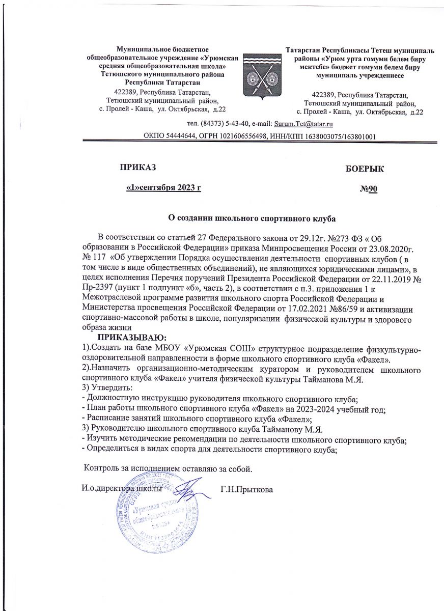 Приказ Минпросвещения России от 23.03.2020 года № 117 «Об утверждении порядка осуществления деятельности школьных спортивных клубов https://legalacts.ru/doc/prikaz-minprosveshchenija-rossii-ot-23032020-n-117-ob-utverzhdenii/