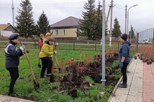 Сегодня на территории парка высажены туи и саженцы кизила. Педагоги приняли активное участие в данном мероприятии.