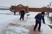 Учащиеся 3,4 классов с учителем Борисовой Е.А. почистили территорию памятника от снега.