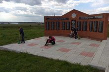 Сегодня учащиеся 2, 4 классов занимались уборкой территории памятника.