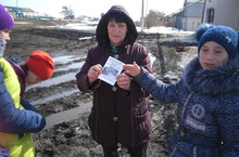 Сегодня учащиеся призывали участвовать в акции "Бессмертный полк" население д.Жуково.