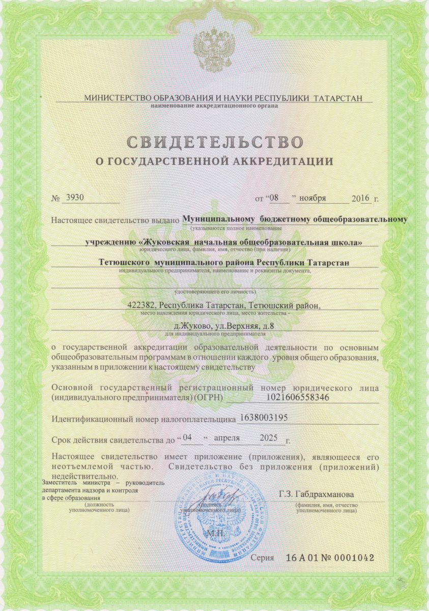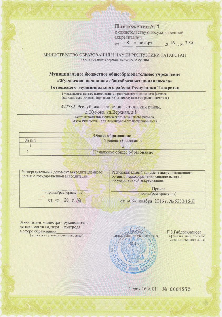Муниципальное бюджетное общеобразовательное учреждение «Жуковская начальная общеобразовательная школа» Тетюшского муниципального района Республики Татарстан