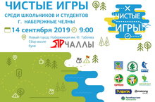 14 сентября 2019 года было организовано экологическое мероприятие «Чистые игры» (далее-Игры) среди общеобразовательных учреждений в рамках Всероссийского экологического субботника «Зеленая Россия» и республиканской акции «Чистый берег». Мероприятие было организовано в городе Набережные Челны на Набережной им Ф. Табеева.