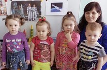 В первой младшей группе №1 были проведены беседы на темы: "Наша планета", "Космонавты" с рассматриванием иллюстраций, дидактического материала о космосе.