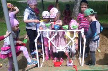 Для развития познавательного интереса и практических навыков детей в исследовательской деятельности, с помощью родителей, мы сконструировали дидактический инвентарь для экспериментирования с водой и песком на участке группы. Дали ему название "Веселые воронки". Нашим детям очень нравятся игры с водой и песком на свежем воздухе