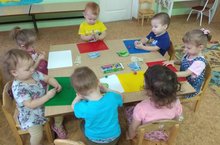 В первой младшей группе лепка на тему «Разноцветные шарики»