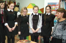 11 класс с учителем истории Насибуллиной Нурсиной Наиловной посетили сельскую библиотеку для участия в мероприятии, посвященном 100-летию со дня Октябрьской революции, которую провела библиотекарь Лысанова Галина Ивановна 16.11.2017