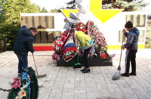Уборка на памятнике! 5 а и 5 б навели порядок на памятнике воинам ВОВ. Кл. руководители Лысенков А.В. и Гимранова Г.С. 11.10.2016