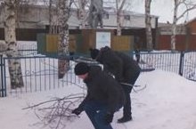 05.02.2015 Буген дәресләрдән соң 11 нче сыйныф егетләре белән hәйкәл янын бураннан сон коелган ботаклардан чистарттык.