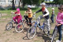 Лагерьда велосипедчылар ярышы
