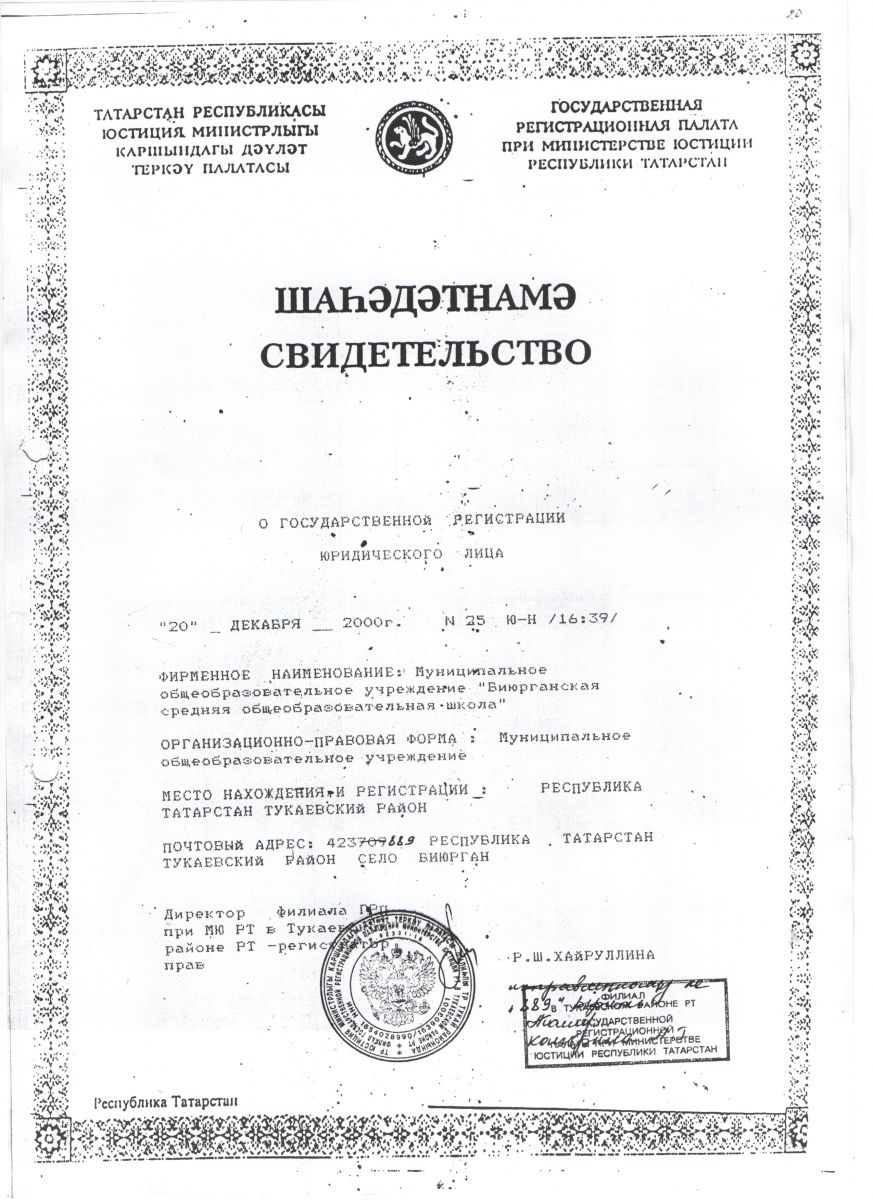 Муниципальное бюджетное общеобразовательное учреждение «Биюрганская основная общеобразовательная школа» Тукаевского муниципального района РТ/Татарстан Республикасы Тукай муниципаль районы "Боерган төп гомуми белем бирү мәктәбе" муниципаль бюджет гомуми белем бирү учреждениесе